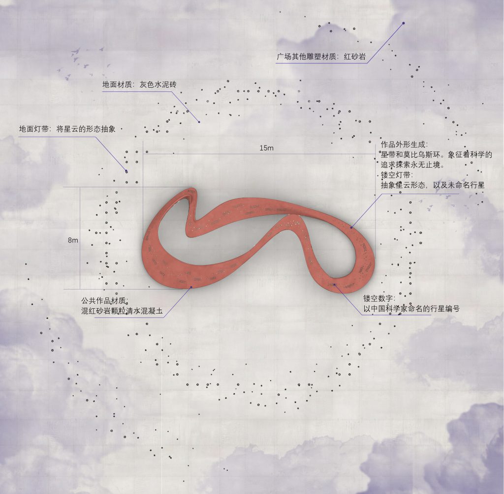 项目意在用公共装置叙述五四精神中的”探索科学“精神。”与星求索“使用小行星带为灵感,建成铭刻中国历史上的科学家、思想家的纪念碑。通过小行星带的造型吸引游客参观互动,并以及以科学家等伟人的故事来引导青少年进行学习探索,增强创新精神。